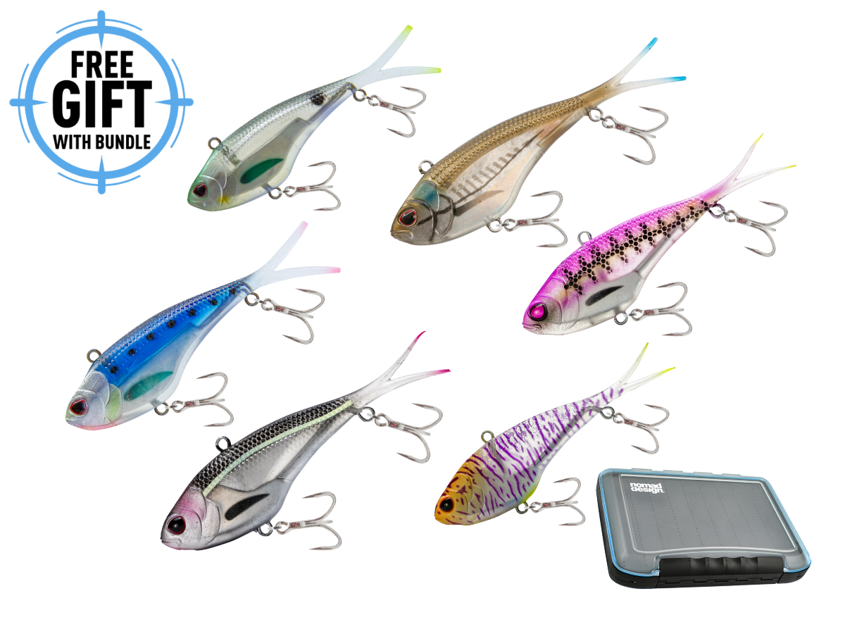 A selection of Capt. Jarad 'Dingo' Boshammer's favorite vibes all in the one bundle. These are what he uses day to day on charter and most days these are what catches him more snook than livebait - yeah Really!! With all colors in the 110, 95 and 75 range of Vertrex Swim and Max vibes to choose from, Dingo recommends the 'Croaker' and 'The Boo' colors. This bundle also comes with a vibe box for easy organization plus a FREE Nomad Hat.