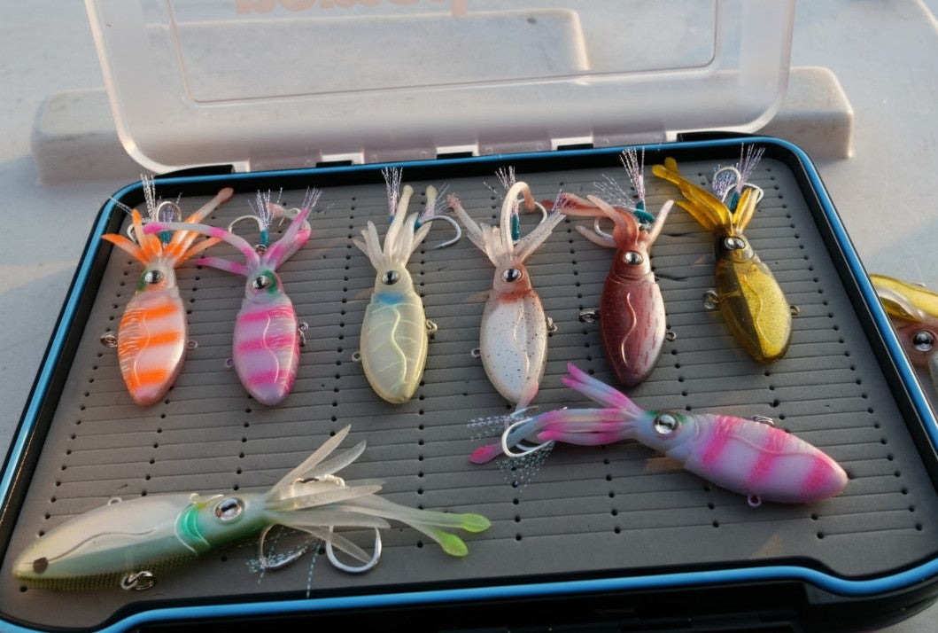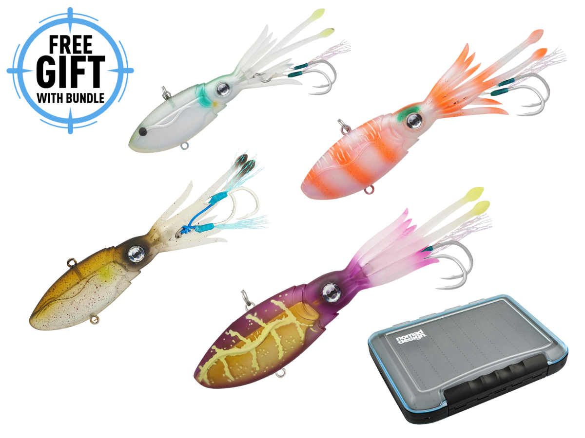 This bundle pairs our powerhouse Squidtrex™ 95, 110, 130, and 150 models with our premium Vibe Storage Box, the ultimate setup for anglers targeting serious offshore and nearshore predators. Built with a lifelike profile and our patented vibration technology, the Squidtrex™ lures deliver crushing results on Snapper, Grouper, Amberjack, Kingfish, Tuna, and more. Comes with a FREE Vertrex Max!