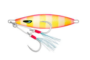 Centre balanced jig design creating an ideal slow pitch jig that flutters at the start of the sink but sinks quickly afterwards to get down deeper.