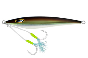 The ridgeback is the perfect crossover jig allowing use as a true slow pitch jig, with a unique shape that flutters on the sink but with a body taper also allowing faster retrieves and actions.