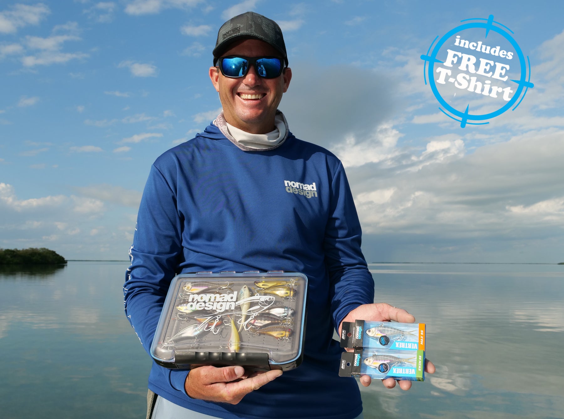 A selection of Capt. Jarad 'Dingo' Boshammer's favorite vibes all in the one bundle. These are what he uses day to day on charter and most days these are what catches him more snook than livebait - yeah Really!! With all colors in the 110, 95 and 75 range of Vertrex Swim and Max vibes to choose from, Dingo recommends the 'Croaker' and 'The Boo' colors. This bundle also comes with a vibe box for easy organization plus a FREE Nomad T-shirt. Select shirt size and add to order in the cart.