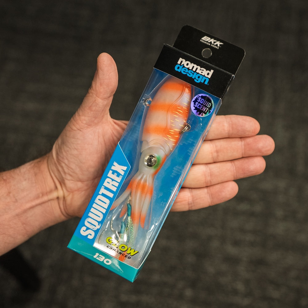 The SQUIDTREX uses Patented technology to combine a soft vibration lure into a squid shaped body to produce a unique action designed to trigger bites. It can be jigged vertically, cast or even trolled.